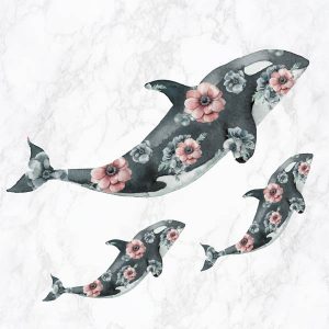 Floral Orca on Marble