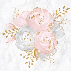 Floral Bouquet Rose Gold Pink Glitter on Marble