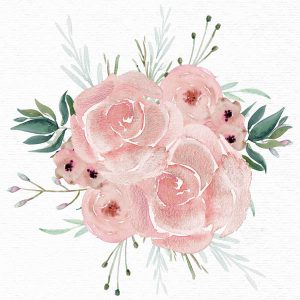 Pink Roses Watercolor Bouquet