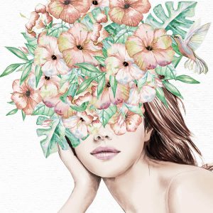 Woman With Tropical Flowers On Her Face Square