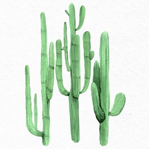 Cactuses Watercolor Green on White