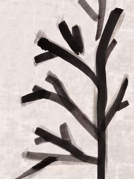 Black Ink Branch on Canvas