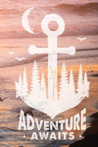 Adventure Awaits Anchor Quote Seagull Sunset Portrait
