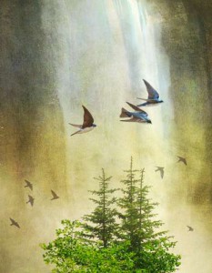 Waterfall Tree Swallows – Print on Demand