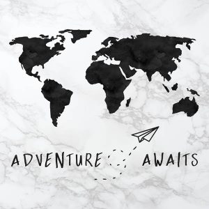 Adventure Awaits Map Black and White