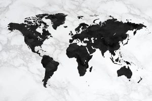 World Map Black on Marble