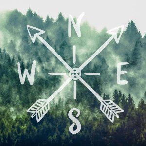 Compass Adventure Foggy Forest Mountains
