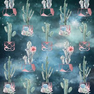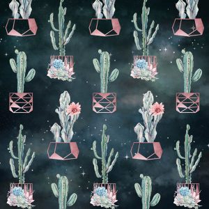 Rose Gold Potted Cactuses Watercolor on Night Stars