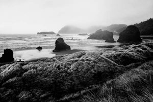 Grassy Dunes Pacific Coast Beach Black and White