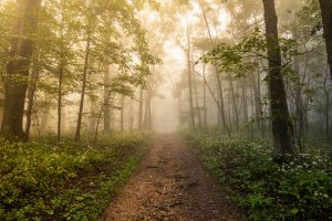 Foggy Floral Forest Path
