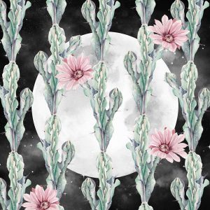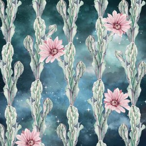 Watercolor Cactus Stripes on Night Stars