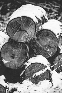 Wood Grain Snow Log Pile II Black and White