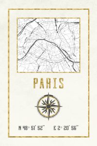 Paris France Map Gold Vintage Compass and Coordinates